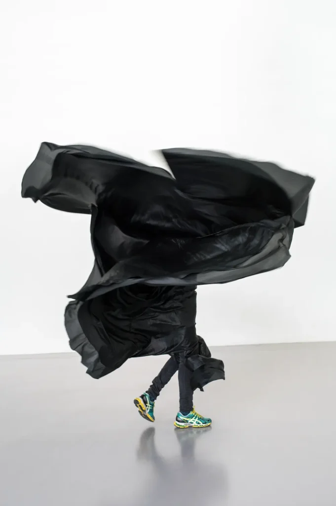 La chorégraphe Ola Maciejewska offre une nouvelle lecture des danses serpentines imaginées par Loïe Fuller. Fascinée par l’aspect sculptural de ces performances, qui mêlent textile, bâtons, sons, air et la force du corps en mouvement, elle déconstruit cette référence historique, immortalisée par les Frères Lumière. Des formes hybrides naissent de cette interaction.